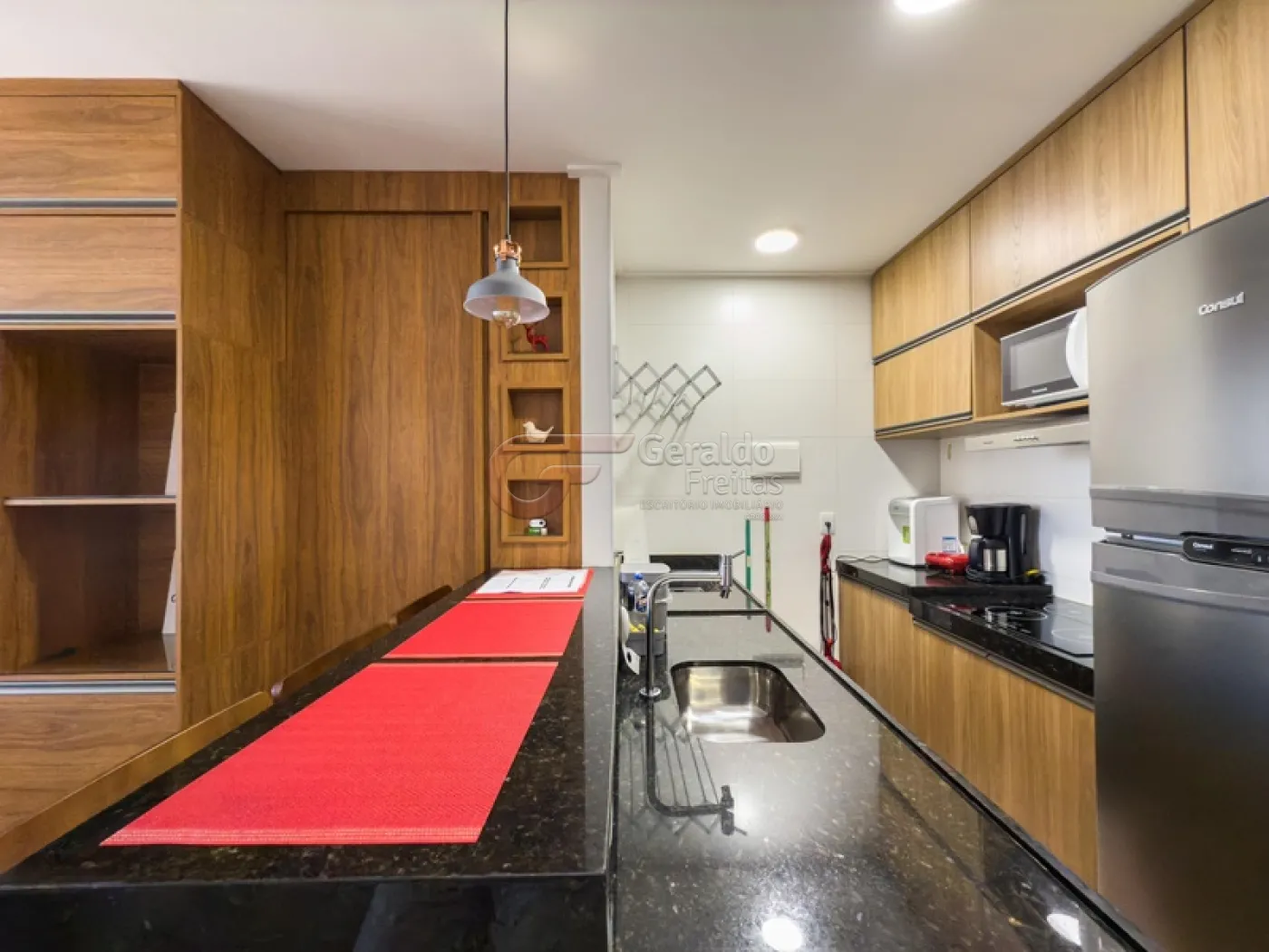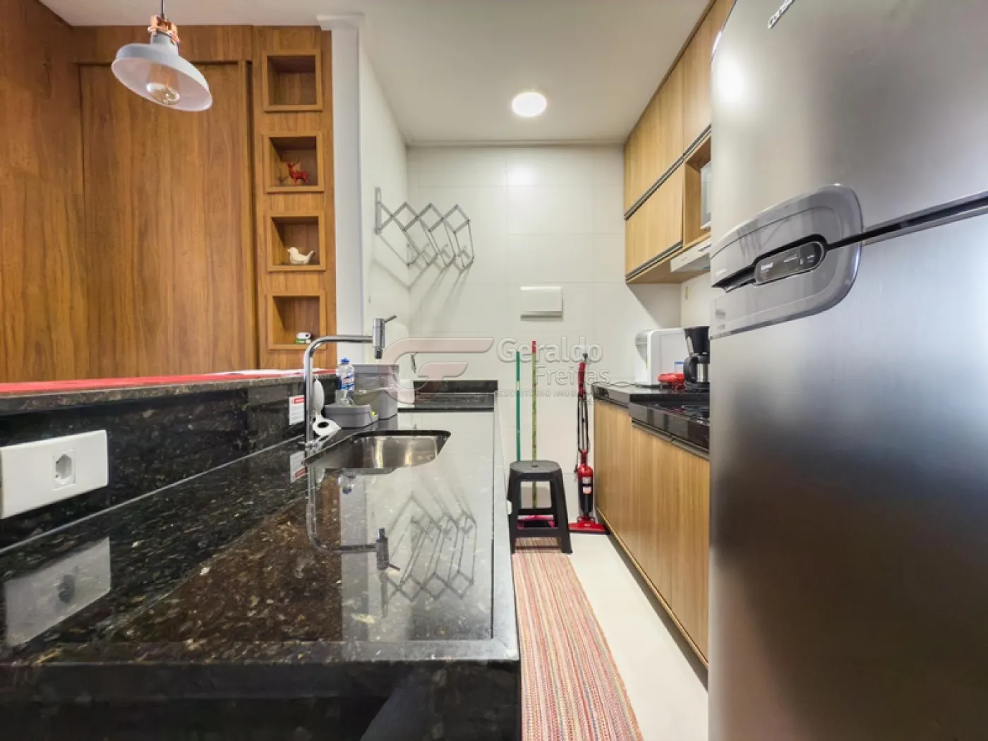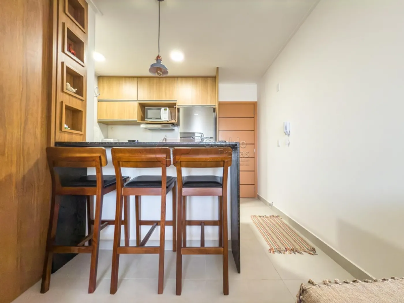 Ao entrar no imóvel, você será recebido por um ambiente aconchegante e bem planejado. A sala de estar, integrada à cozinha americana, cria um espaço prático e convidativo, ideal para relaxar ou receber visitas. A cozinha funcional foi pensada para facilitar a sua rotina, enquanto a área de serviço integrada garante mais conveniência no dia a dia.