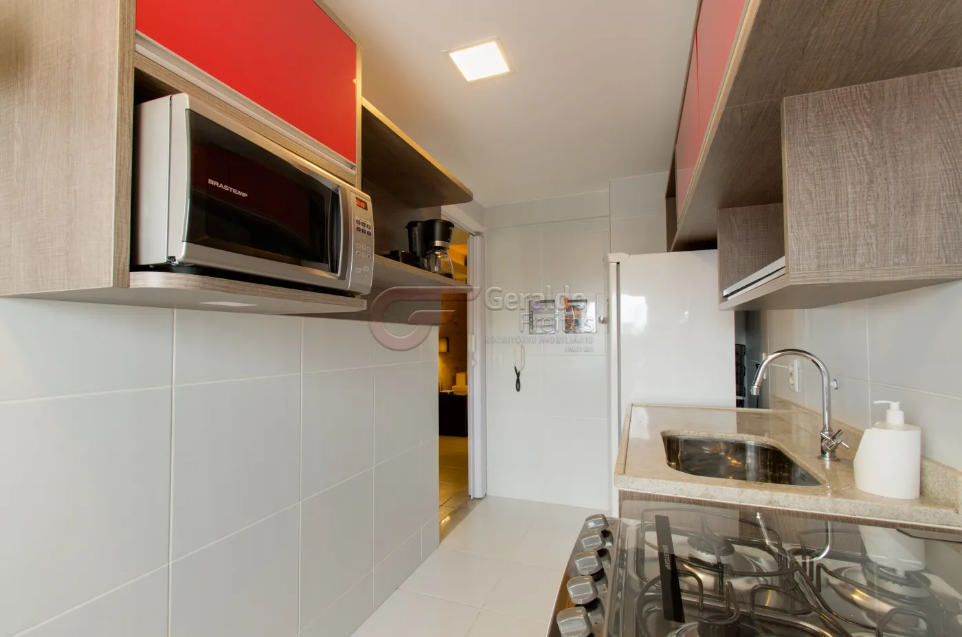 - Cozinha moderna, equipada com exaustor e área de lavanderia