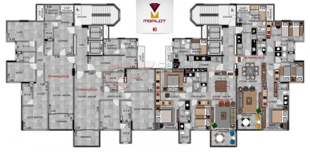 - TERMINAÇÕES 02 E 03 ? 117,25M2: 03 suítes + DCE, Estar/Jantar, Varanda, Lavabo, Cozinha, Área de serviço, Quarto de serviço e WC de serviço.
