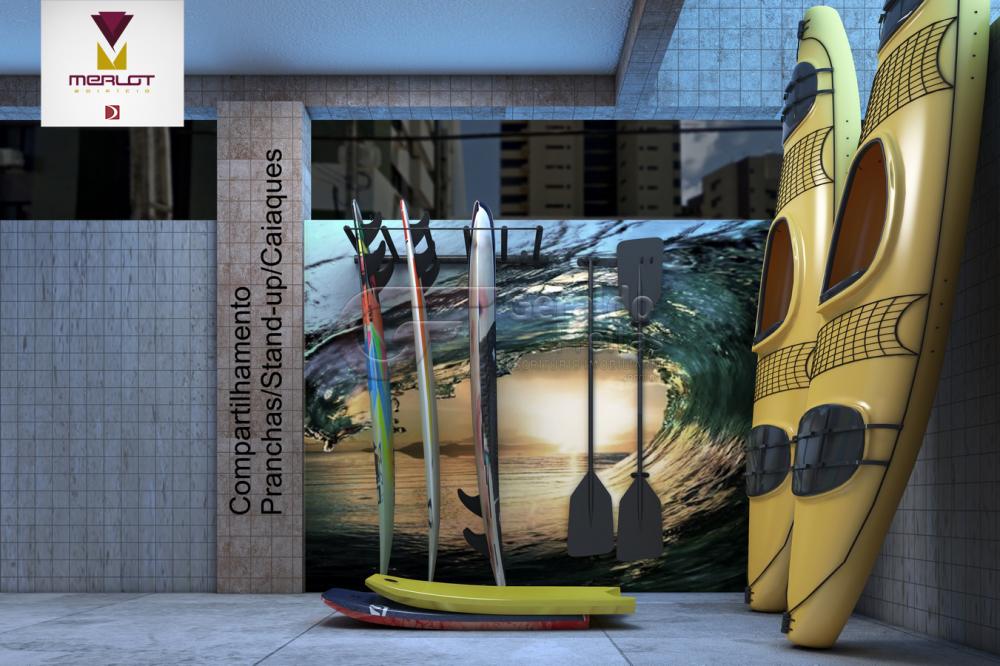 Guarita com WC e célula de segurança, Plataforma PNE, Praça das babas, Miniescaladas, Playground, Minigolge, Salão de jogos open, Piscina com prainha e senadinho, Praça dos namorados, Churrasco gourmet, Miniquadra, Garage Band, WCS masculino e feminino, Salão de festas, Fraldário/Berçário, Brinquedoteca, Espaço Gourmet, Sala do sindico, Ferramentaria/Manutenção, Spa com massagem/ Relax / Ofurô / Sauna, 04 Elevadores, Recepções, Escadas, E-commerce / Concierge, Zeladoria com W.C.B, DML, Área para motos *1, Compartilhamento de pranchas/ Stand up/ Body board e caiaques*4 e Espaço PET.