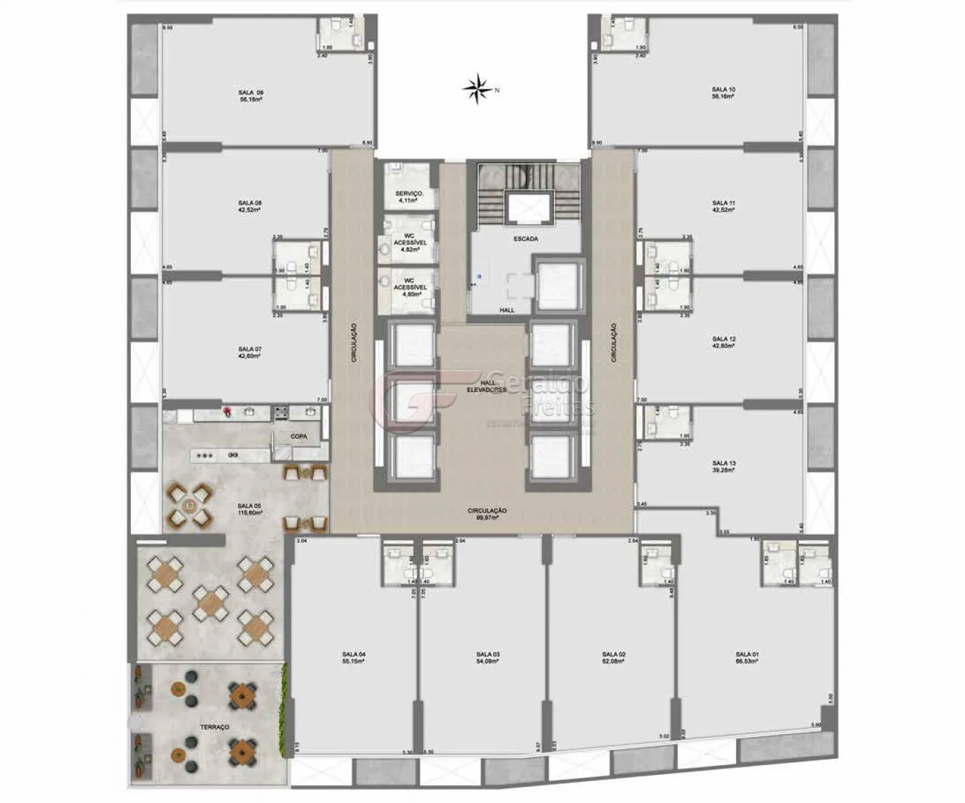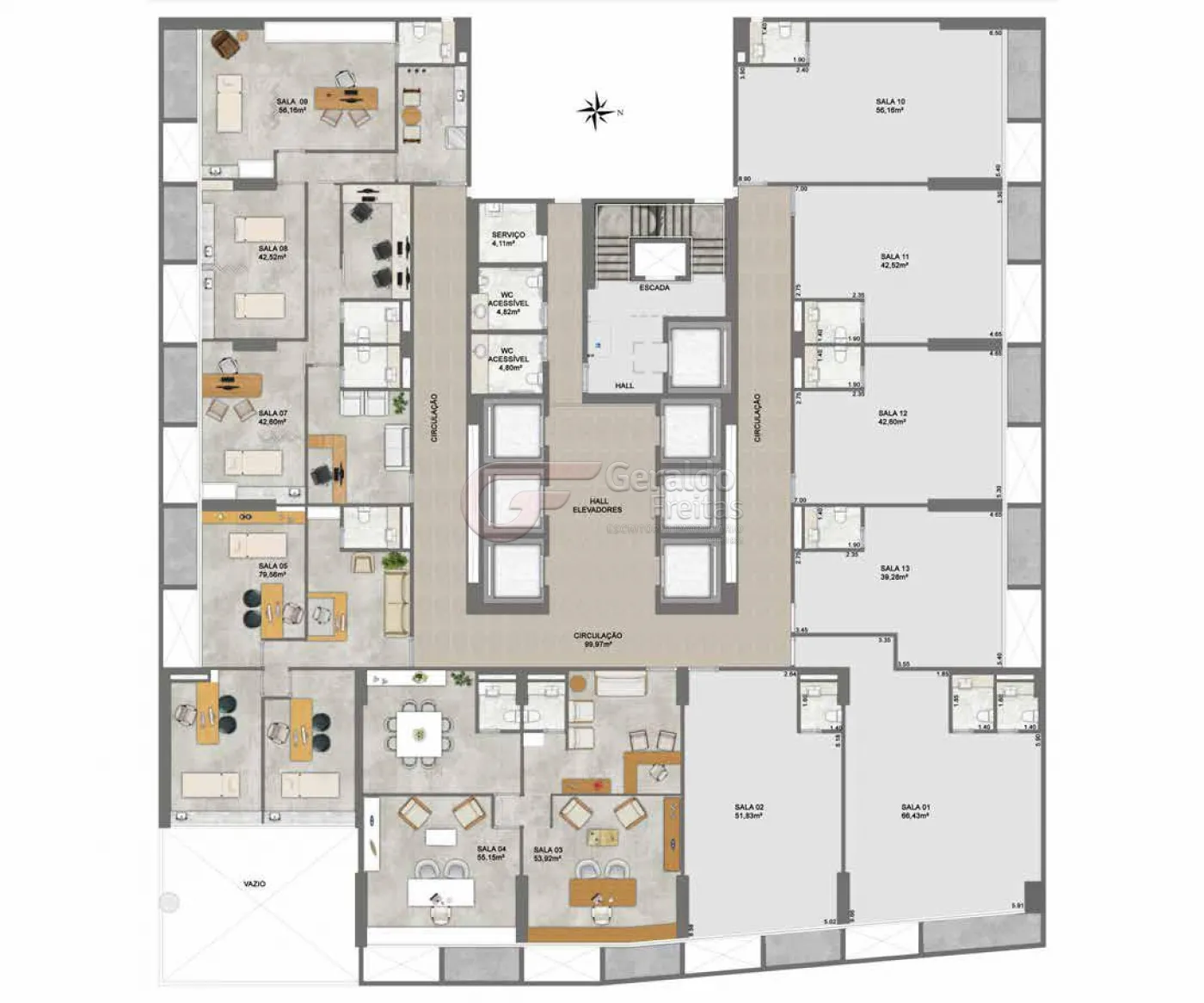 AS SALAS ADAPTAM-SE PERFEITAMENTE ÀS MAIS DIVERSAS OPÇÕES DE LAYOUT. A MODERNIDADE PERMITE A FLEXIBILIDADE DE USOS E A PERSONALIZAÇÃO DAS SALAS.